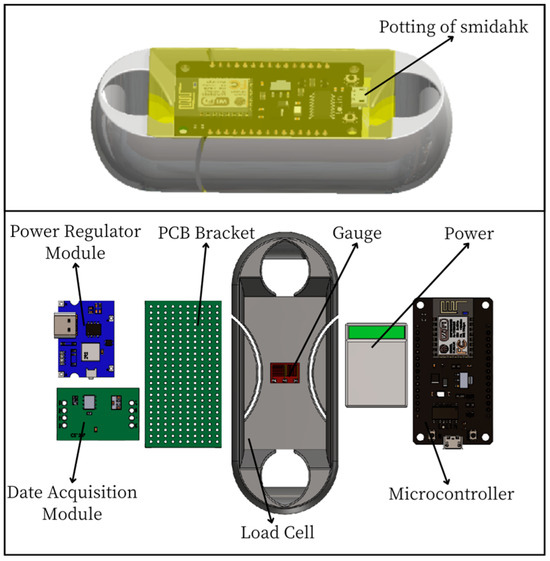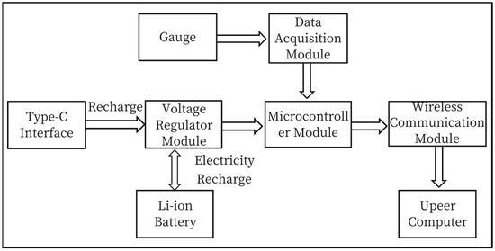 - Microspace data acquisition: integrating the microcontroller module, data acquisition module, strain gauge, power supply module, and wireless transmission module in a limited space to ensure measurement accuracy, sampling frequency, and data transmission requirements.
