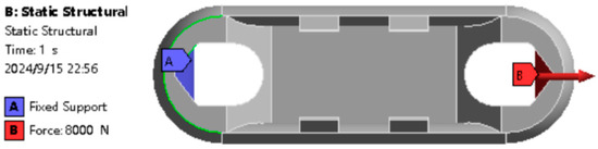 One side of the earring is fixed, and an 8000 N force is applied to the other side of the earring. The finite element analysis results of the Load Cell Scheme I are shown in Figure 8.