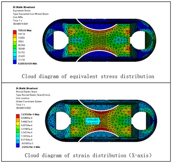 Based on the static analysis of Load Cell I, a static analysis is performed on Load Cell II under the same conditions. The finite element analysis cloud diagram for Load Cell II is shown in Figure 15.