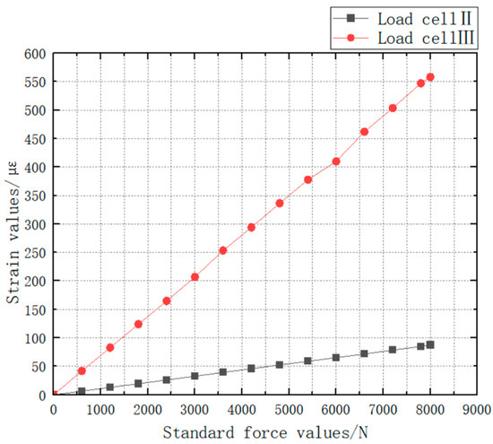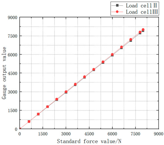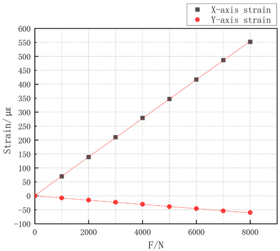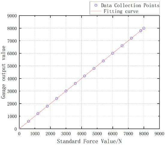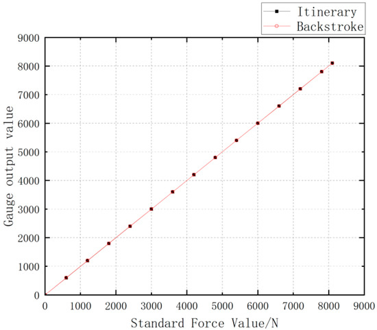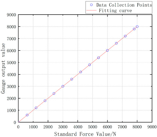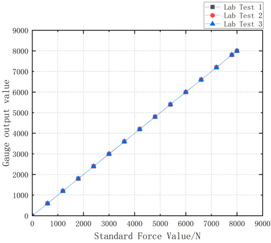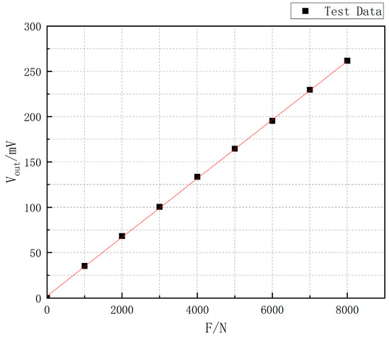 In the experiments, the performance parameters of the miniature measuring instrument are obtained by conducting continuous loading tests from 0 to 8000 N on the miniature measuring instrument [23,24,25]: