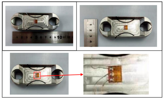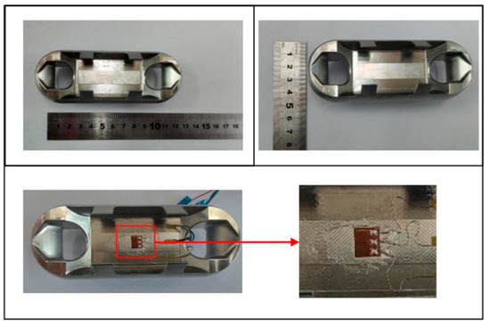 The design of Load Cell of the miniature measuring instrument directly determines the performance of the instrument. In this paper, the structural optimization design is carried out according to the Load Cell I. The hardware module of that acquisition system is packaged on both sides of the Load Cell by adopting two assembly schemes. The optimized Load Cells are called Load Cell Scheme II and Load Cell Scheme III. In Load Cell Scheme II, the battery is on one side, the microcontroller, the A/D sampling module, and the charging module are on the other side. The Load Cell Scheme III adopts one side of the microcontroller and the battery, and the other side of the A/D sampling module and the charging module. Load Cells II and III are shown in Figure 10 and Figure 11.