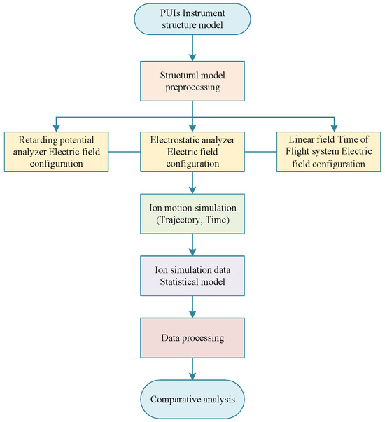 | Begin Step 1: Select the V–S theoretical distribution model. Step 2: Input parameters such as r, θ, λ, etc. Step 3: Calculate parameters such as the number and energy of PUIs. Step 4: Generate .ion file data based on PUI parameters. Step 5: Input into SIMION for detector simulation. Step 6: Output information parameters such as particle number, pitch angle, energy, position, etc. Step 7: Perform data processing to calculate PUI detection performance indicators. Step 8: Calculate count rates. Step 9: Repeat the above steps by selecting traditional probability models. Step 10: Compare the output results of the two models with real orbital data. End |