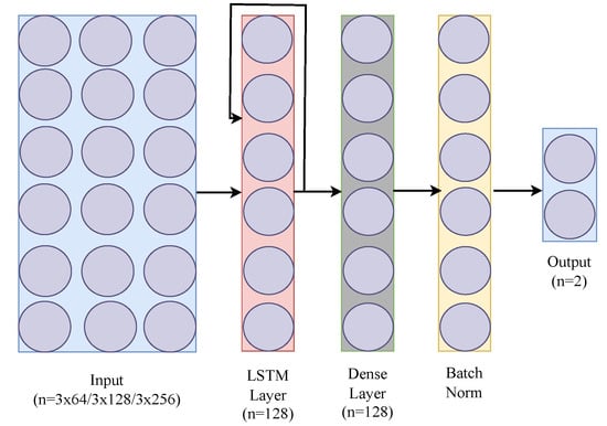 The Binary Cross Entropy (BCE) with ADAM optimizer is used. RNNs are traditionally trained with backpropagation through time (BPTT), so it is necessary to specify how many steps n in the past the network should be trained on. This defines the size of the window W of data points that must be fed to the model at each data sample selection. Figure 2 shows the basic LSTM that we have used in our study.