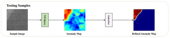 In this section, we present our new framework for recognizing and segmenting defects, VQGNet. The training and testing process is illustrated in Figure 1 and Figure 2, respectively. VQGNet comprises several fundamental components, which we will delineate in the subsequent sections: the anomaly map generation module ViT-Query (Section 3.1), an anomaly generator (Section 3.2), the main multi-task network architecture GalvaNet (Section 3.3), and the loss function (Section 3.4).