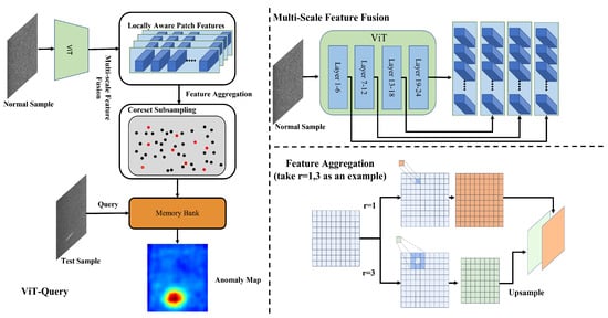 - An anomaly detection algorithm based on a ViT backbone named ViT-Query, which is enriched with semantic information, multi-feature fusion, and neighbor feature aggregation methods, is proposed as an encoder to generate more confident anomaly maps.