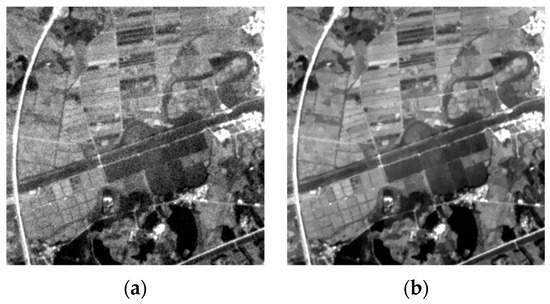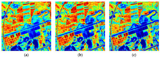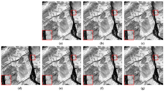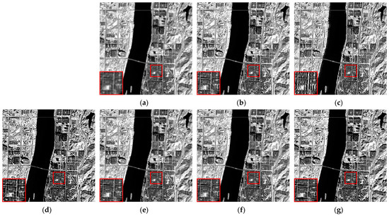 As shown in the table, the similarity between the B2 band and B1 band images is the highest. This result is consistent with our theoretical analysis, so we use the B2 band data as the reference image. In addition to selecting the reference image, the values of parameters and are also closely related to the denoising performance.