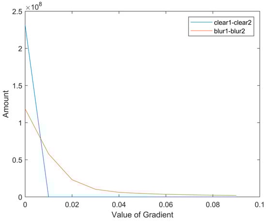From Equation (1), it can be concluded that the grayscale value at a point after blurring can be considered a weighted sum of the grayscale value at the point and within its neighborhood. Therefore, for the pixel with the minimum grayscale value in a patch, the grayscale value after blurring will be greater than or equal to the original value. The authors analyzed the intensity histograms of over 5000 natural images for patch-wise minimal pixels of clear and blurred images, and the results show that the PMP of clear images is much sparser than that of blurred images. Subsequently, Liao et al. [47] theoretically proved that blurring will lessen the sparsity of PMP.