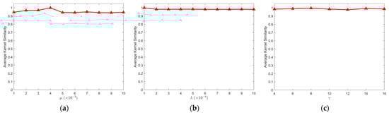 Average kernel similarity: (a) parameter ; (b) parameter ; (c) parameter .