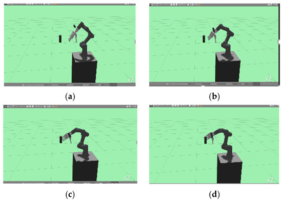 Because the reinforcement-learning environment was implemented on Gazebo, it was easy to replace the manipulator or gripper URDF with different types. This approach can overcome the drawbacks of traditional methods that require new model analysis and controller designs whenever a new robot is configured. Considering that meaningful learning results for a complex 6-axis manipulator can be obtained after approximately 8–12 h of training, this method offers a timesaving advantage. The time needed for learning can be decreased by adjusting the time acceleration in the Gazebo simulation, which was reduced by approximately 2–2.5 times in this study.
