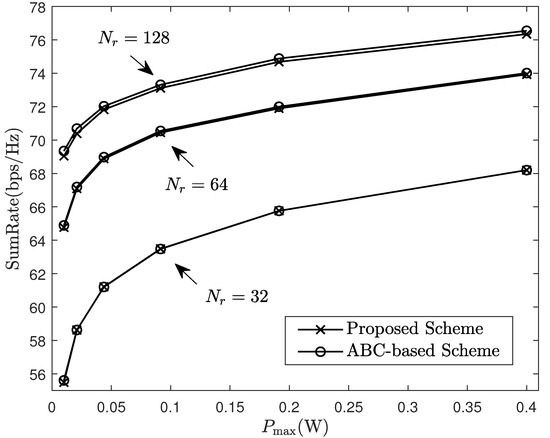 Figure 4. Sum-rate of system under different beamforming schemes.