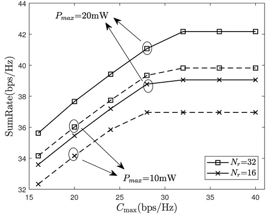 Figure 6. Sum-rate of system with different maximum fronthaul capacity.