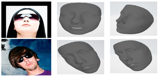 - Booth, J.; Roussos, A.; Zafeiriou, S.; Ponniahy, A.; Dunaway, D. A 3D morphable model learnt from 10,000 faces. In Proceedings of the IEEE Computer Society Conference on Computer Vision and Pattern Recognition, Las Vegas, NV, USA, 27–30 June 2016. [Google Scholar] [CrossRef]