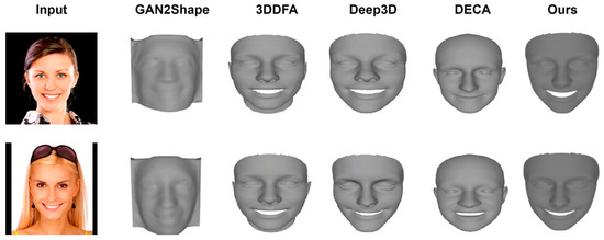 - Liu, Y.; Ran, T.; Yuan, L.; Lv, K.; Zheng, G. 3D face reconstruction from a single image based on hybrid-level contextual information with weak supervision. Comput. Graph. 2024, 118, 80–89. [Google Scholar] [CrossRef]