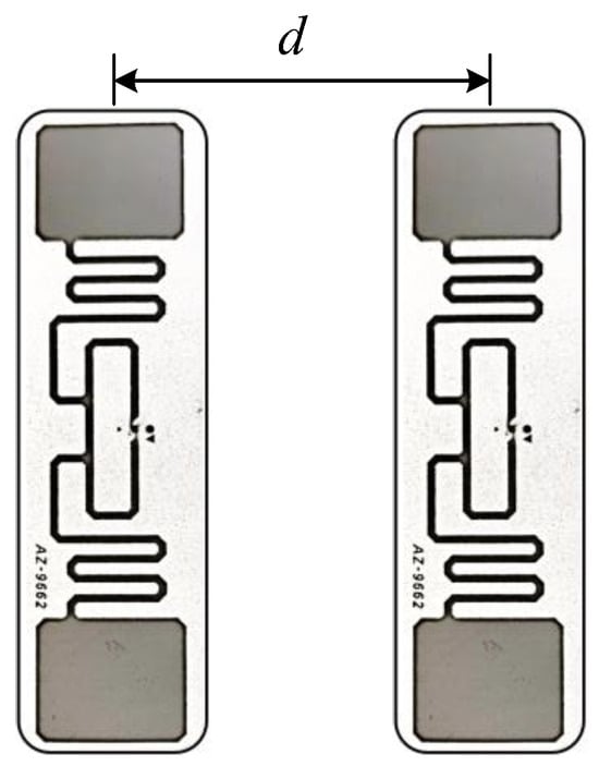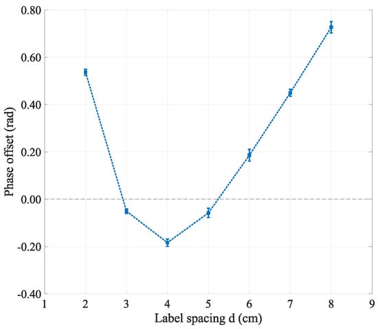 Scenario (a). The test situation is shown in Figure 7. When the communication link distance exceeds one wavelength, there will be a phase ambiguity problem. To eliminate phase ambiguity, the distance difference for the communication link between the antenna and adjacent tags should be less than wavelength, i.e., . Due to the round-trip distance between the reader and the tag, the distance between the tags should satisfy . To meet the above situation of tag spacing (about 8 cm), the experiment set the range of tag spacing variation to 3–8 cm, and tested situation (a) within this range to see the optimal spacing d of the tag array within this spacing.