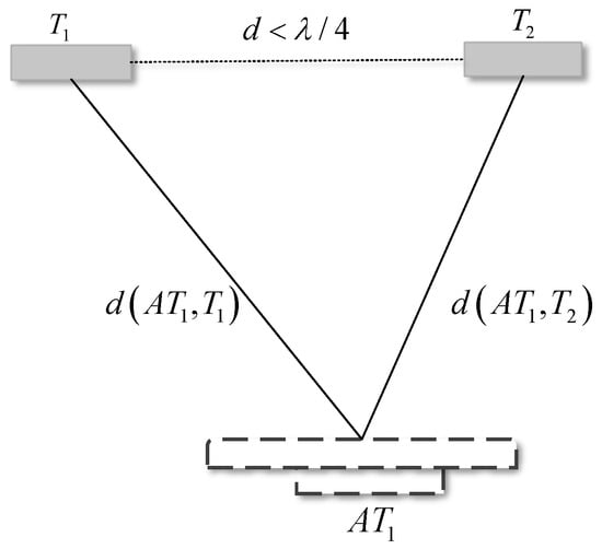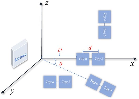 where . The difference in distance from the antenna to the two tags can be obtained by subtracting Equation (13)