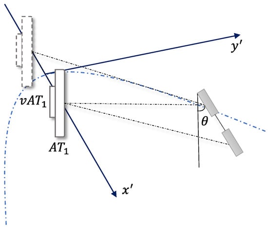 where , since the change in displacement contains the moving distance and the moving direction, so . Meanwhile, since the two tags are placed in parallel, their rotation angles relative to the antenna are the same at different moments, so this results in the same rotational phase shift, thus . The coordinates of tag q at the next moment are set to be , so the displacement of tag q within is
