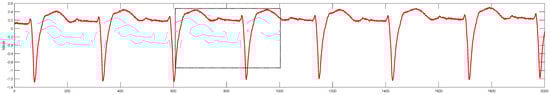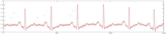 In this paper, the actual measured signal is used to verify the filtering and denoising effect. The actual measured ECG signal is shown in Figure 10.