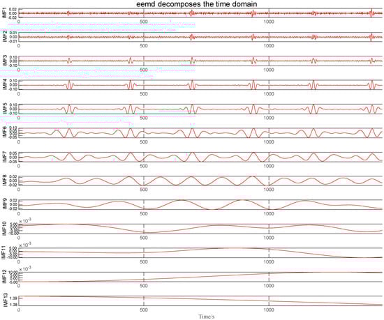 (3) The overall average of each component is calculated to counteract the influence of numerous additions of white noise on the real IMF, based on the assumption that the statistical mean of uncorrelated random sequences is zero. The EEMD decomposition finding is presented as follows: