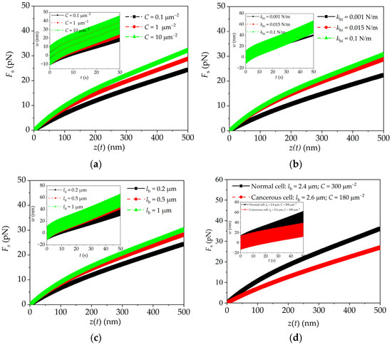 where S is the contact area between the microcantilever tip and cell, and the contact area is assumed no change with time [21,35]; z0 is the initial position of substrate. For the AFM quasi-static mode, the above governing equation and boundary conditions can degenerate into
