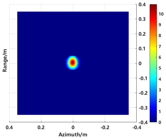 The range and azimuth resolutions are 0.0375 m and 0.0286 m, respectively, with an imaging cell size of 0.05 m, and the imaging scene is 0.71 m 0.71 m, based on the positional error; the maximum deviation in the range direction is 0.015 m; and the maximum deviation in the azimuth direction is 0.005 m. Compared to the resolutions of 0.0375 m and 0.0286 m in the two directions, the extraction positional error is within one imaging resolution cell.