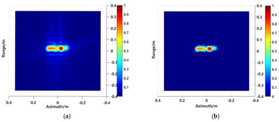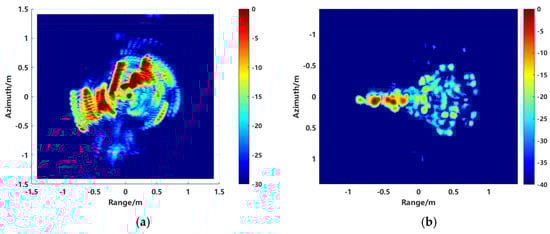 The verification was carried out based on the given target model. The imaging results of both the traditional imaging method and the proposed method are shown in Figure 26a and Figure 26b, respectively.