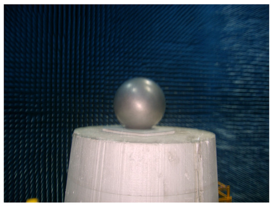 In the microwave anechoic chamber, an aircraft model was placed alongside a metal sphere with a diameter of 150 mm as the calibration target. Optical photos of the two targets are shown in Figure 29 and Figure 30. The test frequency range was 8 to 12 GHz, the sampling interval is 40 MHz. The rotation angle of −10°~10°, and the angle interval of 0.2 degrees. Figure 31a illustrates the imaging results with positional offsets for different aperture centers, while Figure 31b presents the distribution of the target’s scattering centers synthesized using the proposed method.