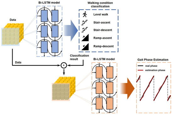 Architecture of the proposed continuous gait phase estimation algorithm using two steps Bi-LSTM.