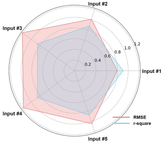 First, as depicted in Figure 5, Input #1 exhibits the highest cGPE performance among the five input features, with RMSE and R2 scores of 0.794 and 0.906, respectively. In other words, the best cGPE performance is obtained when all FSR data, along with FSRFore, FSRBack, and the WC classification results estimated from the previous stage, are used as input data.