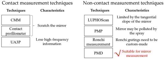 Characteristics of typical contact and non-contact measurement techniques for freeform mirrors.