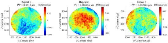 Repeatability verification of a 3-inch concave spherical mirror using proposed stereo bi telecentric phase-measuring deflectometry.