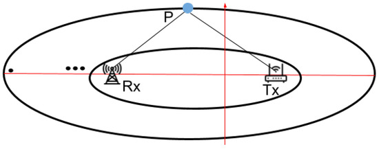 The Fresnel zone is created when radio waves travel from a transmitter (Tx) to a receiver (Rx), traversing multiple paths that result in both constructive and destructive interference due to the alternating lengths of these paths [28]. When considering a radio wavelength , Fresnel zones consist of n ellipses, defined by the following properties: