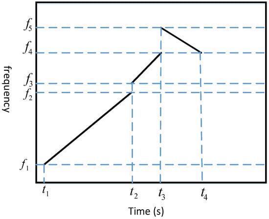 An FDM-CSS signal frame consists of a preamble portion used for positioning and a portion used for acoustic node encoding, as shown in Figure 3. FDM-CSS has a frame structure similar to traditional CSS signals but differs from CSS technology in two aspects. Firstly, the preamble portion has a larger time-bandwidth product compared with the encoding portion, allowing the preamble to have stronger positioning capabilities. Additionally, the frequency band ranges of the preamble and encoding portions are offset. On the other hand, the encoding portion consists of multiple up-chirps and down-chirps in different frequency bands appearing alternately. The specific design concept for FDM-CSS is as follows: For each FDM-CSS signal emitted by the base station, we first determine the transmission duration T and divide T into M segments (in this paper, it is divided into three segments as shown in Figure 3, where M = 3). Subsequently, we specify the chirp signal type (down or up), as well as the start and stop frequencies for each time segment. The mathematical formula for the FDM-CSS signal specifically designed in this paper is as follows: