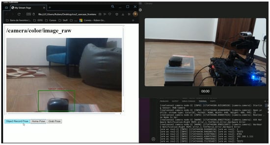 Once everything was up and running, it was possible to observe the object through the camera and see the captured frames from the web interface as well as move the arm towards the target object through the HTML buttons.