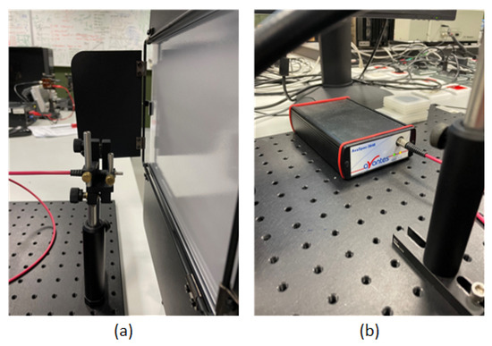 Workstation for measuring the wavelength spectrum of light: (a) probe for measurement, (b) spectrometer.