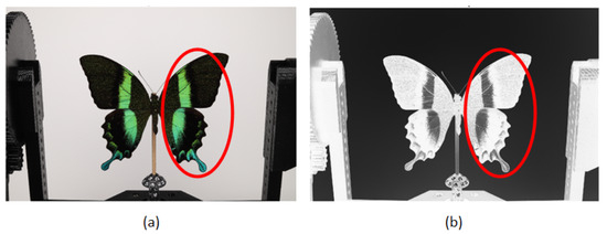 In the case of the selected object, the butterfly Papilio blumei, the following parameters were used: resolution of camera, aspect ratio, aperture, exposure time, ISO, and focal length. These parameters were carefully chosen based on preliminary tests and the specific requirements of capturing the butterfly’s detailed and iridescent wing patterns (set parameters in our experiments):