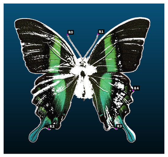 The integration of these technologies ensured that data capture and processing workflows were optimized for efficiency and accuracy. The combination of precise positioning, high-quality imaging, and robust computing power enabled detailed and accurate modeling of the Papilio blumei butterfly, capturing its unique features and iridescent coloration in a realistic 3D representation. The images were created in the standard JPEG format, which is commonly used for imaging. In the camera settings, the uncompressed JPEG format was selected to capture the full image resolution of 6240 × 4160. In previous experiments, the RAW C2R format was employed, but the handling of such large quantities of data proved impractical for the objective of optimizing input data.