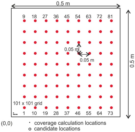Candidate locations and discretization for coverage calculations.