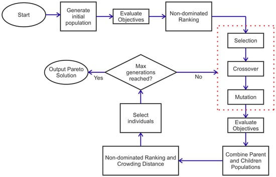 Flowchart for the NSGA-II based on [].