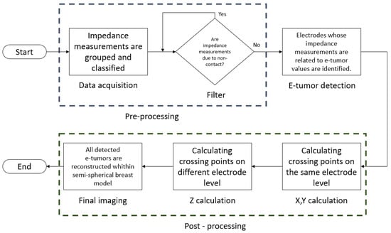 - Gómez-Cortés, J.C.; Díaz-Carmona, J.; Padilla-Medina, J.A.; Calderón, A.E.; Barranco-Gutiérrez, A.I.; Gutiérrez-López, M.; Prado-Olivarez, J. Electrical Impedance Tomography Technical Contributions for detection and 3D Geometric Localization of breast Tumors: A Systematic review. Micromachines 2022, 13, 496. [Google Scholar] [CrossRef] [PubMed]