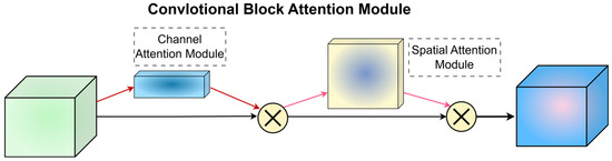 Flame image feature maps contain diverse information across different dimensions: the channel dimension conveys details such as flame color and thermal radiation, while the spatial dimension captures the flame’s shape, size, and texture features. The CBAM module integrates the Channel Attention Module (CAM) and the spatial attention module (SAM). These submodules operate sequentially to generate attention feature maps in both the channel and spatial dimensions. They leverage inter-channel feature relationships to produce channel attention maps, which are then combined with spatial attention to yield the most informative feature maps. The overall structure is depicted in Figure 5.