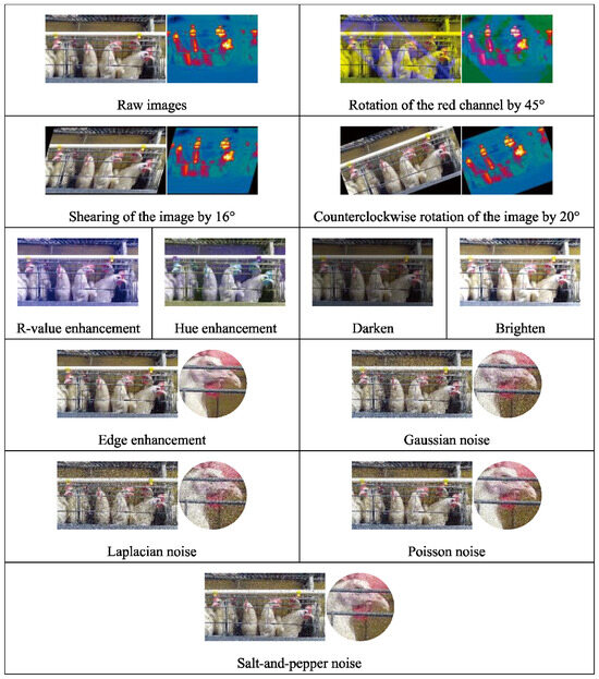 The limitations of the poultry farm environment can result in a singular environment within the collected laying hen image dataset and a limited number of collections. To better adapt this dataset to various breeding environments and deep learning models, we have employed data augmentation techniques to enrich the existing data. Data augmentation considers the impact of factors such as the breeding environment, collection equipment, and chicken head features on the generalizability of the dataset, making the augmented dataset more accurate and reliable in model expression.