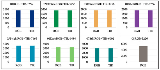 Three rotation methods are used for data augmentation: rotating the image’s red channel by 45°, shearing the image in a 16° direction to create a tilt effect, and rotating the image counterclockwise by 20°. Rotation augmentation is primarily used for enhancing RGB-TIR images, and the enhanced RGB images remain corresponding to the TIR images.