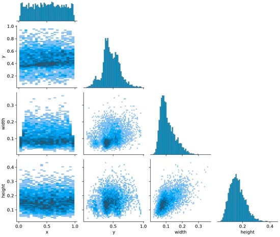 Due to the slightly wider field of view in TIR image compared to RGB images (with the TIR image resolution being lower than that of the RGB images), we employed image correction [18] methods to transform the coordinates and dimensions of the RGB images onto the TIR images to align these two kinds of images. Using the xywh notation for image correction, the calculation method for the two-dimensional coordinates of pixels and the dimensions of length and width in the TIR image is as follows: