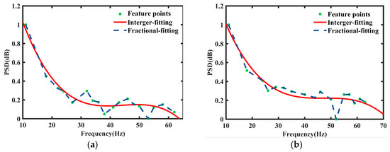 It can be observed from Figure 5 that fractional polynomials can better fit the data compared to integer polynomials. In order to fully verify the flexibility of fractional polynomials, we use the similarity method for the data in the frequency domain to observe the situation of curve fitting. The comparison between the selected score integer and fractional polynomial in the frequency domain is shown below: