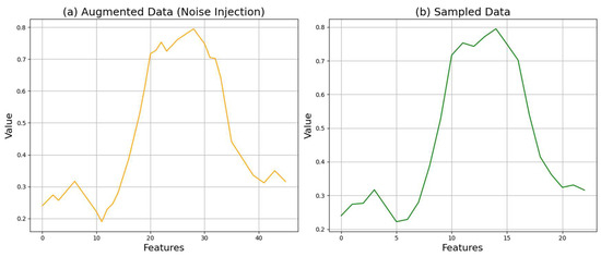 The results in Figure 3 show that the augmented data retain a similar shape to the original data, with slight perturbations. This confirms the effectiveness of the noise injection technique in generating realistic yet diverse data samples. These visual comparisons highlight that while the augmented data are like the original, the noise injection introduces subtle variations, contributing to increased data diversity and enhanced model generalization performance.