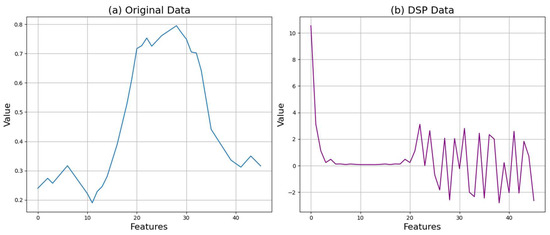 DSP is a technology that uses digital computers or electronic devices to analyze and transform signals. DSP can process signals in either the time domain or the frequency domain, playing a crucial role in various applications such as noise removal, feature extraction, and signal compression. DSP is highly useful for analyzing the complex patterns of time series data and extracting important information to enhance data quality. This is particularly beneficial in the classification of time series data, where DSP can significantly improve model performance [17].