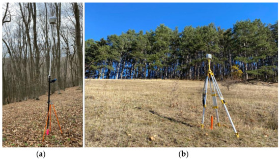 - Hasegawa, H.; Yoshimura, T. Application of Dual-Frequency GPS Receivers for Static Surveying under Tree Canopies. J. For. Res. 2003, 8, 0103–0110. [Google Scholar] [CrossRef]