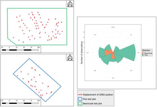 - Murgaš, V.; Sačkov, I.; Sedliak, M.; Tunák, D.; Chudý, F. Assessing Horizontal Accuracy of Inventory Plots in Forests with Different Mix of Tree Species Composition and Development Stage. J. For. Sci. 2018, 64, 478–485. [Google Scholar] [CrossRef]