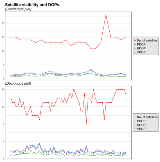 3.2. Variation in GNSS Conditions under the Forest Canopy
