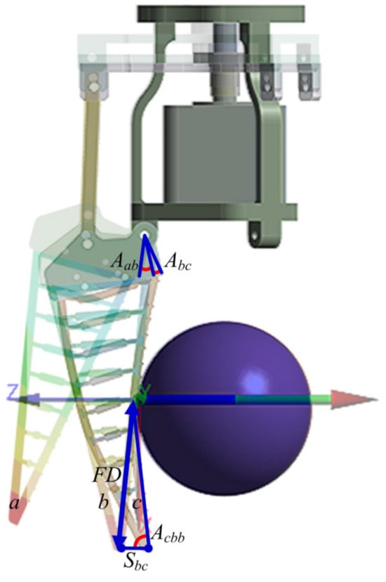 First, determine the contact node. According to the geometric relationship of different grasping states, the following definitions are made: The distance between the contact node and the terminal point is FD. The displacement of the terminal point and the rotation angle of the top from the first contact moment to the completion moment is Sbc and Abc. The angle between the line between the terminal point at the completion moment and the first contact moment and the line between the terminal point at the completion moment and the contact is Acbb. FD can be expressed as follows: